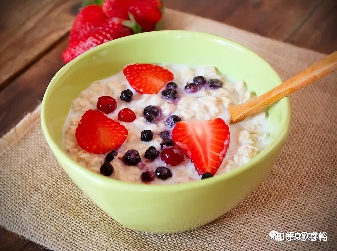 早餐:肉碎燕麦片(燕麦50克 瘦肉25克)、馒头(面粉30克)、苹果(100克)
